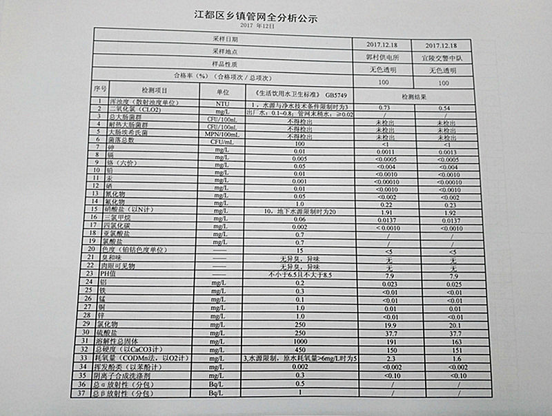 2017年12月江都區鄉鎮管網全分析公示
