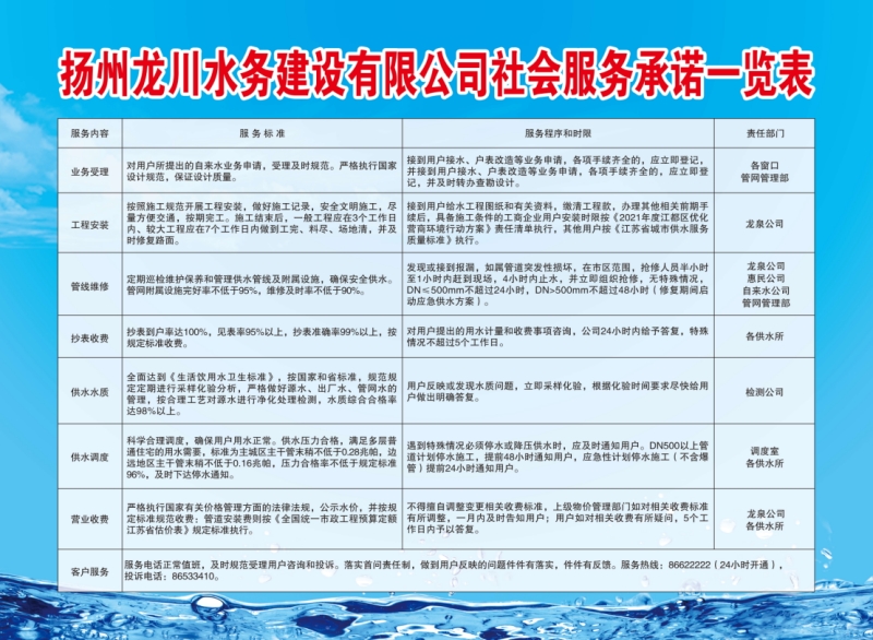 揚州龍川控股水務(wù)建設(shè)有限公司社會服務(wù)承諾
