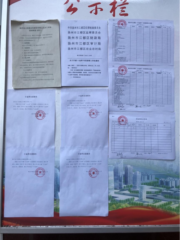 2020年10月?lián)P州市江都區(qū)政府發(fā)布通知,要求鎮(zhèn)(園區(qū))、區(qū)各行政事業(yè)單位、國(guó)有企業(yè)、村(社區(qū),組)、相關(guān)協(xié)會(huì)等開(kāi)展“小金庫(kù)”專項(xiàng)清理工作。我公司接到通知后,嚴(yán)格按照文件精神執(zhí)行。