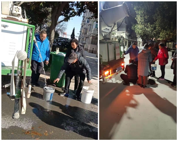 1月4日,經過研究,并與物業公司協商后,制定以下方案:1.公司迅速增派送水車趕赴真武、邵伯兩地,為無水用戶進行送水服務,由物業公司負責維持送水車秩序;2.對有消火栓的小區,打開消火栓,方便居民取水;3.通過用高壓鍋燒水,形成熱蒸氣,通過橡膠管將蒸氣充入供水管道內,逐漸將冰塊融化;4.對有人居住的房屋,逐戶檢查室內銅接頭,防止出現化凍時銅接頭松動漏水,造成用戶損失;5.對無人居住的房屋,暫時關閉樓下表前表后閥門,待用戶回家檢查后及時打開閥門。