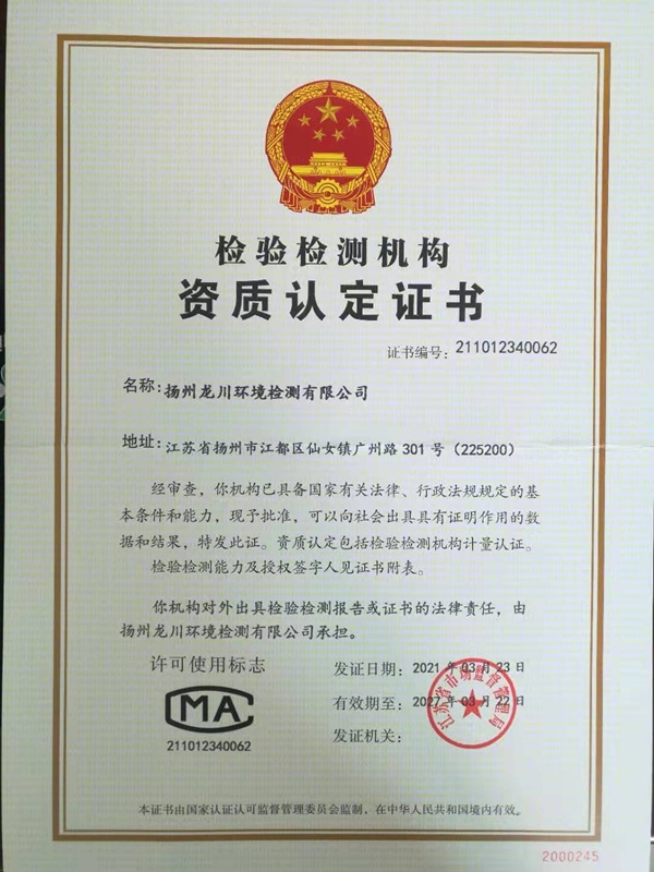 日前,從江蘇省市場監(jiān)督管理局傳來喜訊,揚州龍川水務(wù)下屬龍川環(huán)境檢測公司經(jīng)過材料準(zhǔn)備、網(wǎng)上申請、現(xiàn)場評審、整改提高等環(huán)節(jié),順利通過國家檢驗檢測機構(gòu)CMA資質(zhì)認(rèn)定,獲得國家檢驗檢測機構(gòu)資質(zhì)認(rèn)定證書,這是對龍川環(huán)境檢測公司檢驗檢測技術(shù)能力的肯定,標(biāo)志著公司在質(zhì)量管理、服務(wù)社會水平等方面跨上了一個新的臺階。