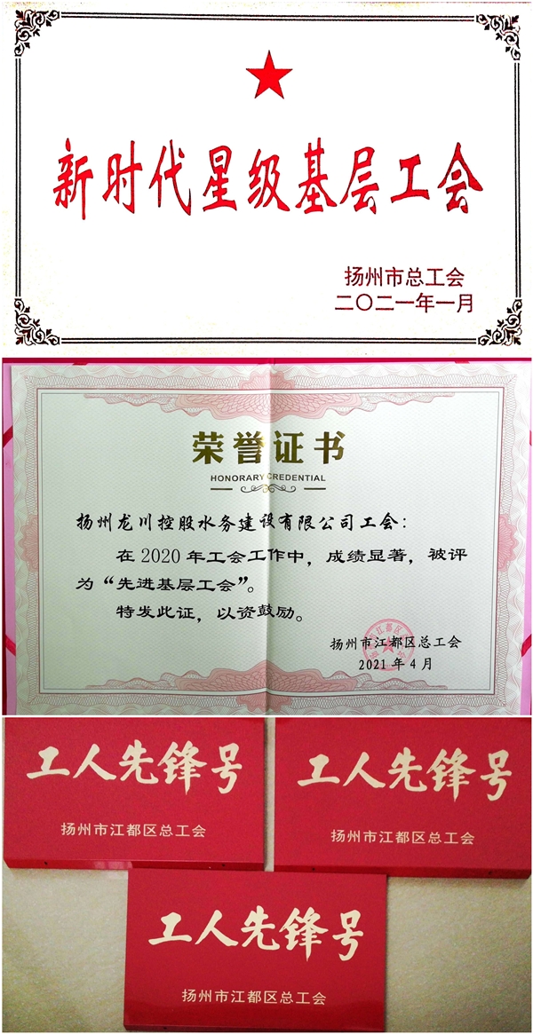 在一年一度的“五一國際勞動節(jié)”即將來臨之際,江都區(qū)總工會第十五屆三次全委(擴大)會議在城區(qū)召開,大會在總結(jié)上年度以來工會各項工作的同時,并對涌現(xiàn)出的各類先進集體和先進個人進行了隆重表彰。揚州龍川水務公司工會榮獲揚州市級“新時代星級基層工會”和江都區(qū)級“先進基層工會”稱號;龍川水務公司下屬環(huán)境檢測公司中心化驗室、下屬惠民區(qū)域供水公司營銷管理辦公室和龍川水務公司客戶服務部客服大廳三個班組榮獲“工人先鋒號”先進集體稱號。