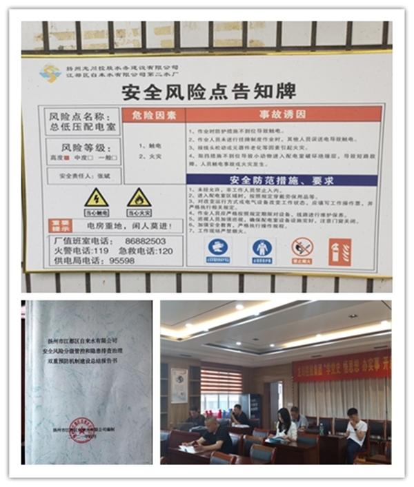 為積極響應(yīng)我區(qū)安全風(fēng)險分級管控和隱患排查治理雙重預(yù)防機制建設(shè),充分發(fā)揮其防范和遏制事故發(fā)生的作用。江都區(qū)自來水公司全面貫徹“安全第一、預(yù)防為主、綜合治理”安全生產(chǎn)方針,開展了為期四個多月的“雙重預(yù)防機制”建設(shè)工作。