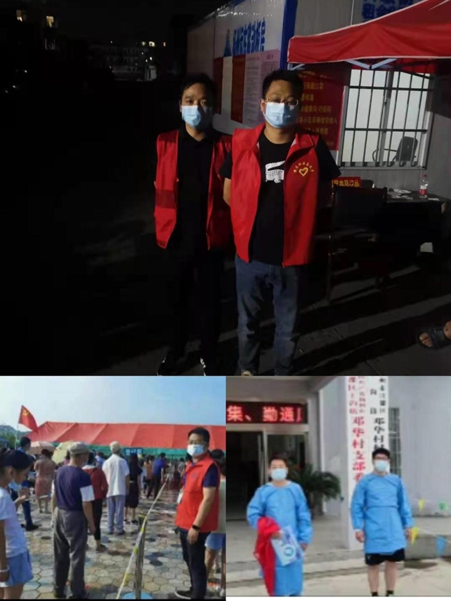 以上圖片為污水公司志愿者在丁溝核酸檢測點、樊莊社區執勤點進行現場志愿服務。
